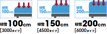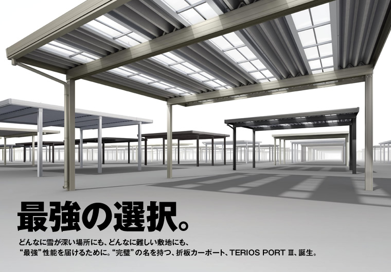 テリオスポートⅢは、そんな地域ごとのニーズに応えるために豪雪地域用のカーポートを、強度別に3つのタイプで展開しています。