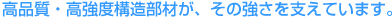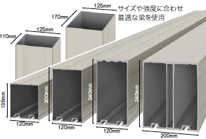 柱や梁、屋根材などの主要部材はもちろん、屋根枠や細かな部材まで高品質&高強度を追求。激しい雪にも、強い風にも安心な、抜群の強度を実現しています。